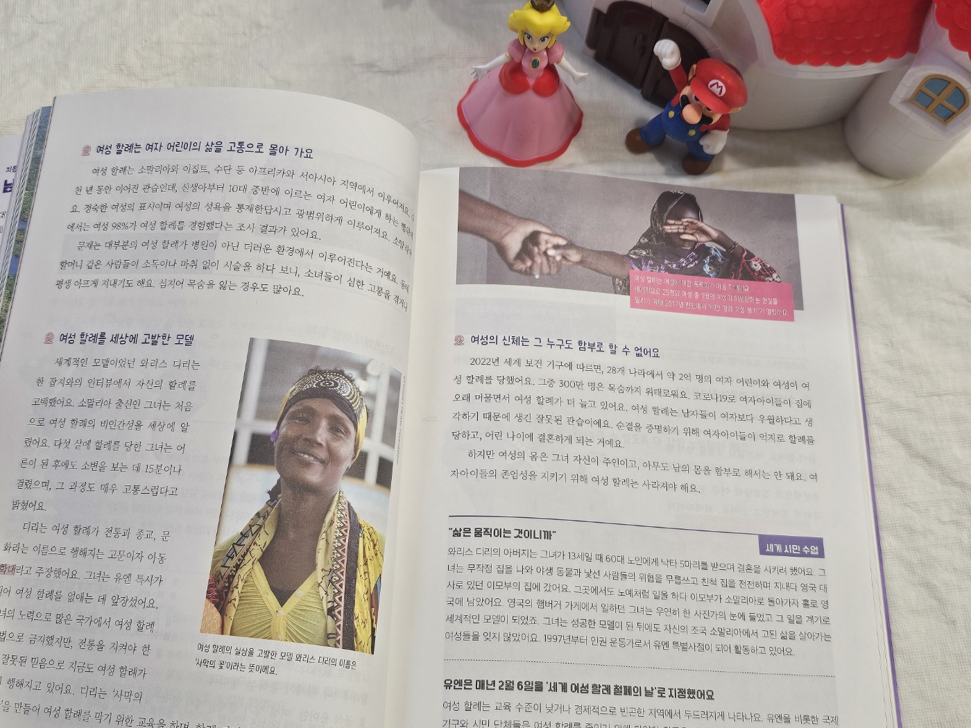 여성 인권이 많이 신장되었다고 해도, 여전히 여성 인권을 탄압하는 나라들이 존재합니다. 이 책에는 전쟁 수단으로 여성을 이용하는 사례, 명예 살인이라는 이름의 범죄, 생리하는 여성을 격리하는 관습이 있는 네팔 일부 지역, 사우디아라비아의 여성 운전 금지 등에 대한 내용이 있는데요. 요즘도 이렇게 여성을 억압하는 제독 있다니, 정말 한탄스러울 뿐입니다. 나만 잘 살면 그만이지, 내가 알아서 뭐해라는 생각이 팽배해 있는 한, 차별받는 사람, 정의롭지 못한 제도는 없어지지 않을 것입니다. 세계의 곳곳이 썩어가는 줄 모르고, 자신의 좁은 생활 반경만 괜찮다고 안심할 수 있을까요? 적어도 자신이 '인간'이라는 점을 인식하고 있다면, 이 책 속에 들어있는 문제들에 대해 고민해 보아야 할 것입니다.
