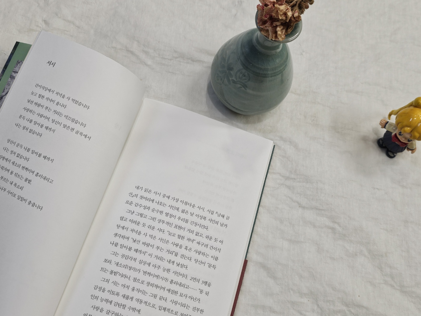 난해하거나 어려운 시가 없다는 것도 이 책의 장점입니다. 시인의 개성이 느껴지지만, 그 개성이 남은 알아들을 수 없는 치기어린 모습이 아닌, 누구나 공감할 수 있게 드러나 있습니다. 그리고 거짓으로 꾸며진 시가 아니라, 진솔함이 느껴지는 시들이 수록되어 있습니다. 이렇게 명시들만 쏙쏙 뽑아서 소개를 해주시니 '이런 시가 좋은 시구나'라고 많이 배울 수 있었습니다. 저는 학창 시절, 문학 시간에 시를 별로 좋아하지 않았습니다. 억지로 시의 내용, 주제를 암기하는 게 재미도 없고 힘들었기 때문입니다.