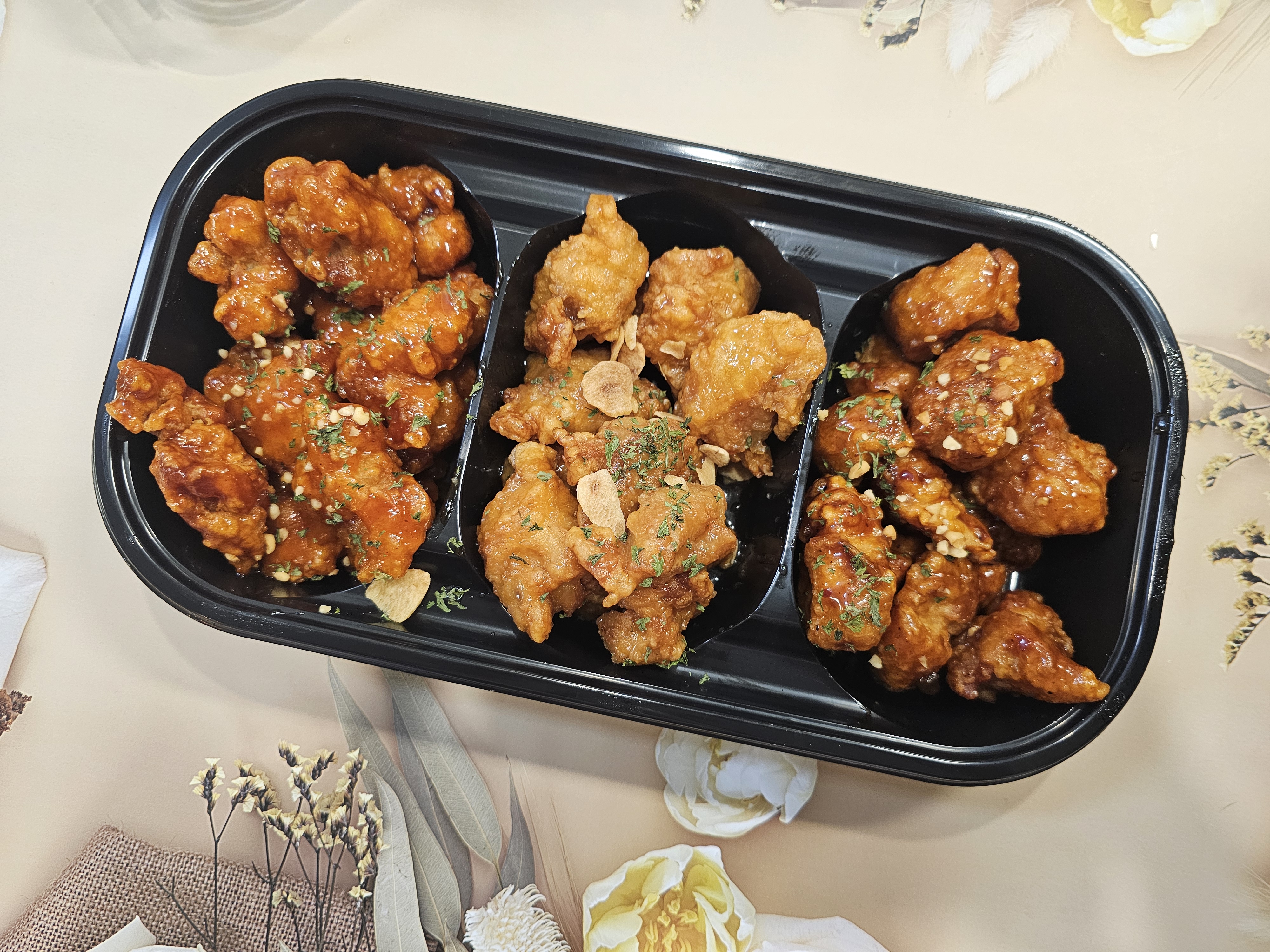 훈제 삽겹살과 치킨들입니다.